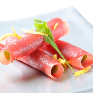 Add a teaspoon of the dressing on top of each ham and salami stacks.