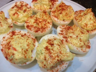4. Make the filling. In the bowl with the egg yolks add mayonnaise, Dijon mustard, truffle oil, Danish Smoked Salt, and the minced onion, celery or pickle (Optional).Stir to combine. Mash the egg yolks as you stir. Stir until the egg mixture is creamy.